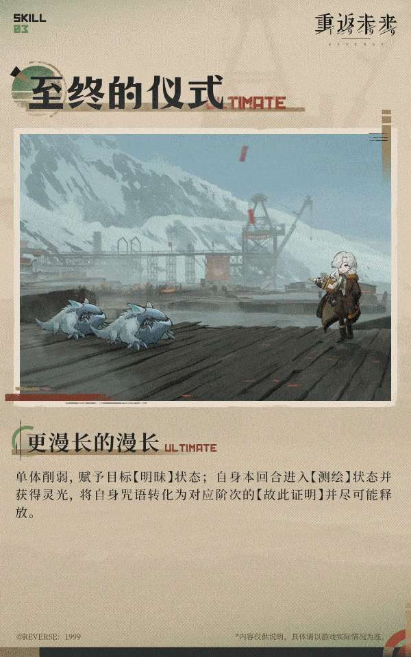 进入战斗时,暴击率和暴击创伤提升。释放至终的仪式后,赋予自身[筹备 - 北方哨歌] 状态。