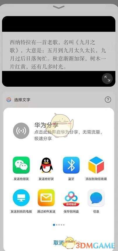 4、最后点击分享按钮还嫩直接将文字第三方平台。