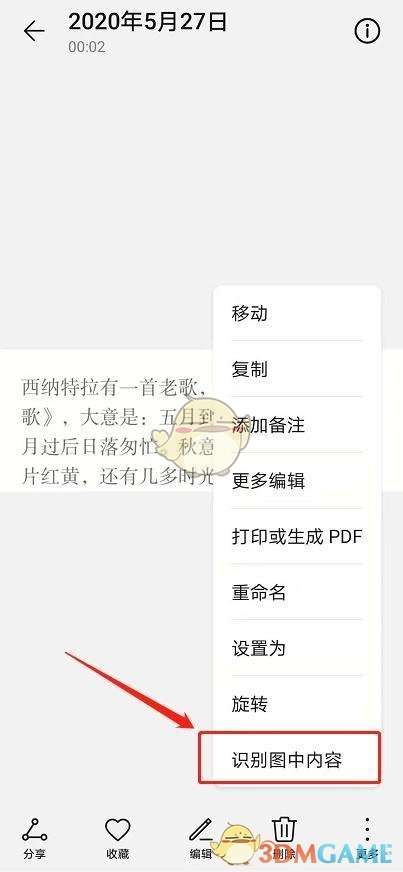 1、在华为图库中找到一张带文字的图片,点击右下角更多。