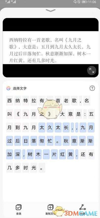 3、下图就为识别完成的页面,用户们在此可以在文字上进行拖动选择文字及复制。