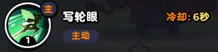 每隔6秒,对敌方攻击最高的目标使用写轮眼,使其命中降低30%,且每秒造成80%攻击的伤害,持续3秒。