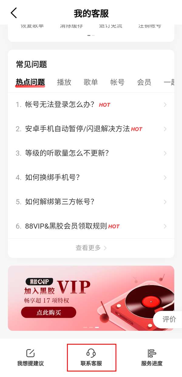 1、开启网易云,选择左上角三横图标,点击【我的客服】。