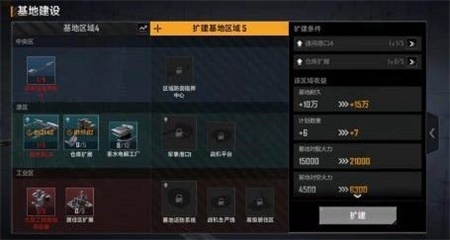 1、通过基地建设页面,玩家可以顺利的找到城建。同时,点击对应的按钮,可以对相应的建筑进行升级;