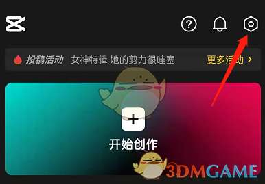 1、打开剪映,点击右上角设置图标。