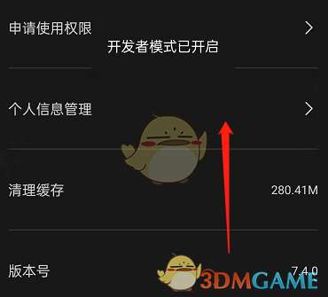 3、点击到显示出开发者模式已开启后,向上滑动。