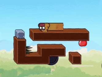 2、然后石头会掉下挡住尖刺,我们向右移动,此时不能直接吃苹果