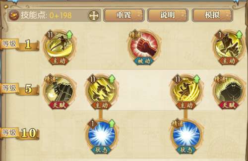 1、1~10级这里,参考一下。暴风脚和指枪两个系数一样,你随便选一个就行。指枪连射的状态是回血,点个1级就行了,1级是21%,点满也就30%。