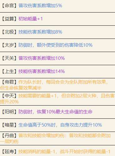 | 【问书】 | 每回合开始时,依次为我方全体附加“攻击力提升15%(2回合),受到的伤害降低8%(2回合),回复20%攻击力的生命 |