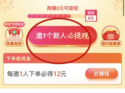 2、然后点击邀请新人必提现。