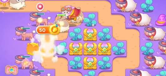 2、先在右侧建造一个满级的蝴蝶结炮台,集中攻击周围的绵羊。
