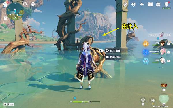 1.确定破破岛的形态(矮山形态),从下图箭头处进入山洞。不确定山是不是矮的,可以改变一下山体看看。