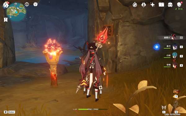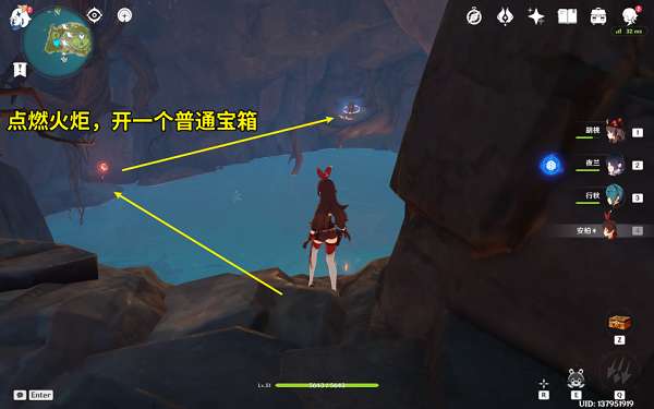 2.点亮4个火炬,再点亮火元素方碑后,水位下降。