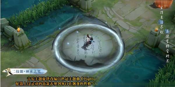 李白的二技能是一个圆圈,只不过圆圈的颜色变成的黑白二色,在中间也会出现许多的诗篇。