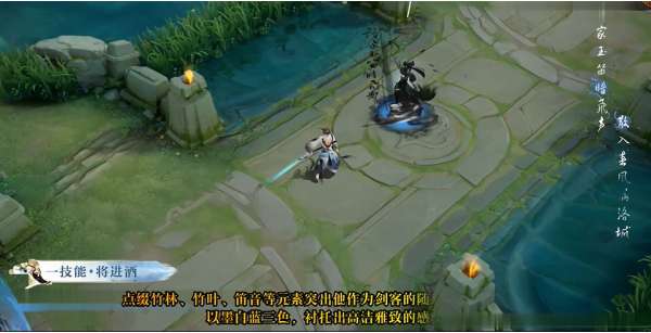 一技能将敬酒会向前突刺,并在原地留下一道由墨水组成的人影,人影的脚下会指向李白突刺的方向。