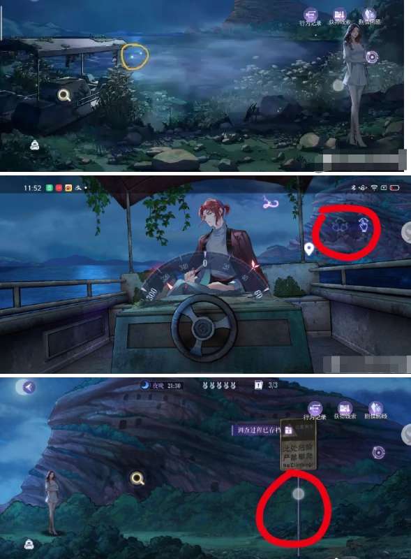 进山洞前有个隐藏点警告牌(p3红圈光标处),进山洞出来就点不了了所以务必在右侧粉红提示标出来时就点