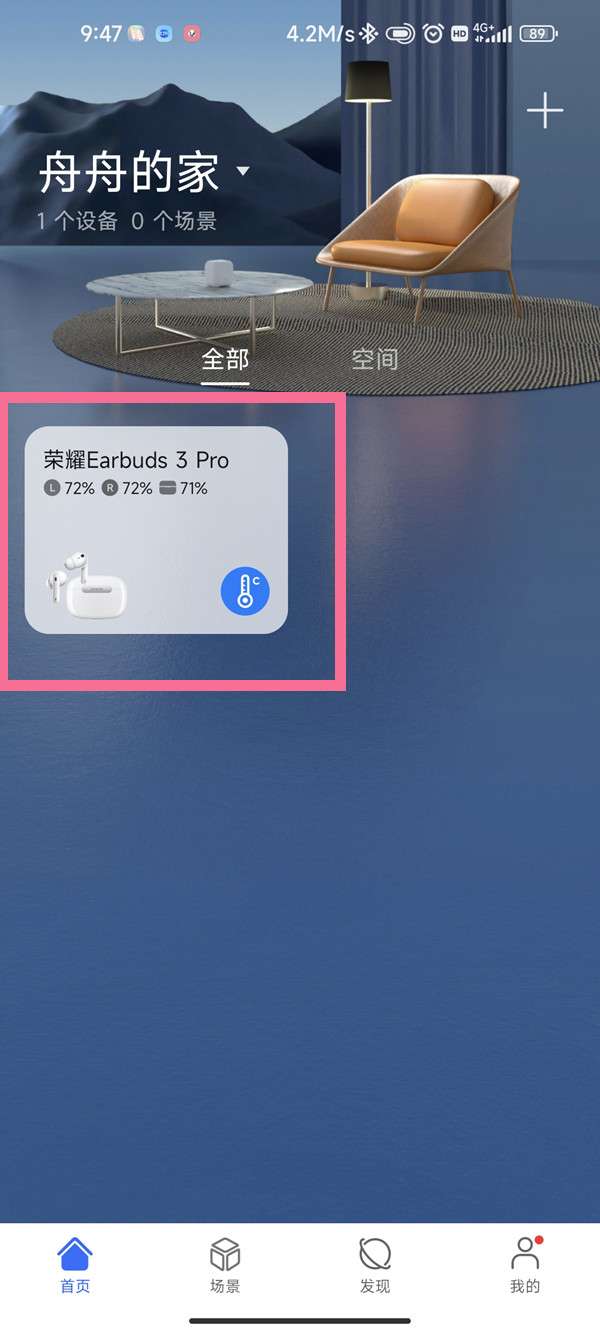 1、选择荣耀智慧空间APP,找到荣耀Earbuds 3 Pro耳机卡片。