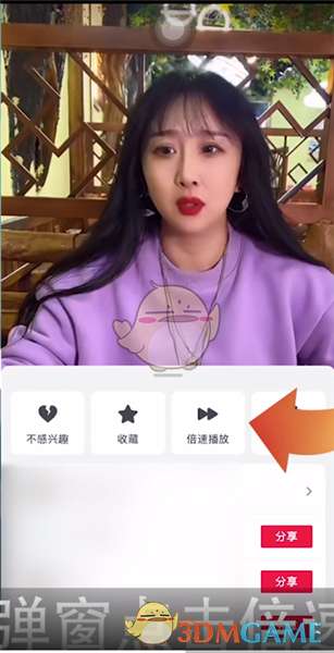 2、这时长按视频,在跳出的弹窗点击倍速播放选项,