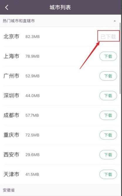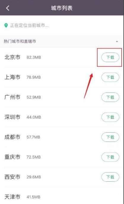 第五步:点击【下载】按钮即可下载相应的城市的离线地图(如图所示)。