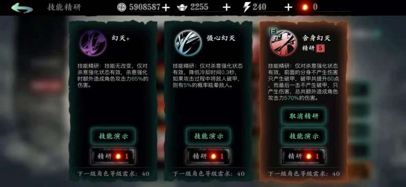 它的属性是全部伤害和防御穿透加成,最重要的是它的核心羁绊。如果你升华之后是可以减少5秒钟的冷却,技能链6.4秒和6秒已经接近完美,如果没有这个羁绊,变成11.4秒和11秒,技能链就没法玩了,有很长的真空期。所以如果你有这个心法和羁绊,那技能链就会非常顺滑。
