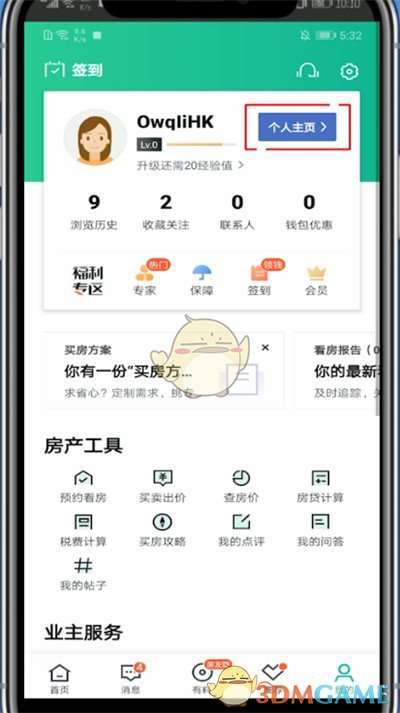 2、点击个人主页
