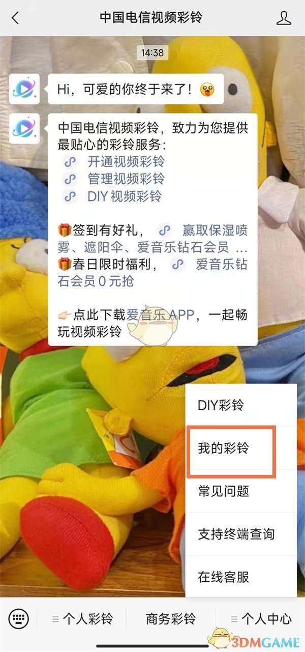 1、微信搜索进入“中国电信视频彩铃”公众号,点击个人中心,选择我的彩铃。