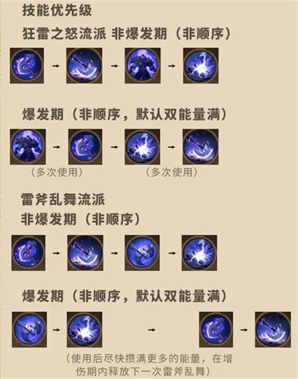 2、对于雷斧乱舞流派来说,牺牲了非爆发期的伤害,换来了爆发期的超强势。狂雷之怒就更均衡一些。