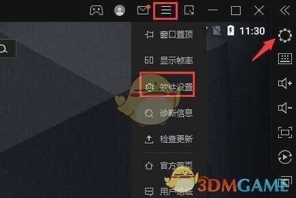 1、首先点击右上角“齿轮”或者“三”图标,进入“软件设置”。