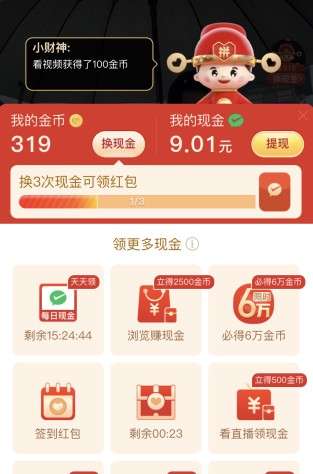 2、这个活动难度很大,而且刚开始的时候是250个金币一分钱,后来是350金币,400金币,再就是5000金币一分钱,所以是越到后面越难。而且获得金币也没有最开始那么容易了,不过还是有用户成功提现了的。