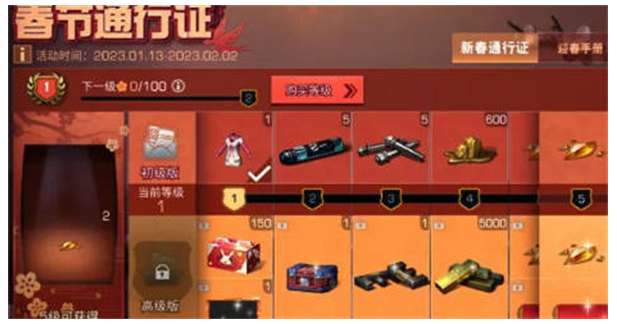 1:春节通行证,在1月13日开启,2月2日结束,完成任务提升等级即可获得奖励,同时解锁高级的通行证可以解锁更多的奖励;