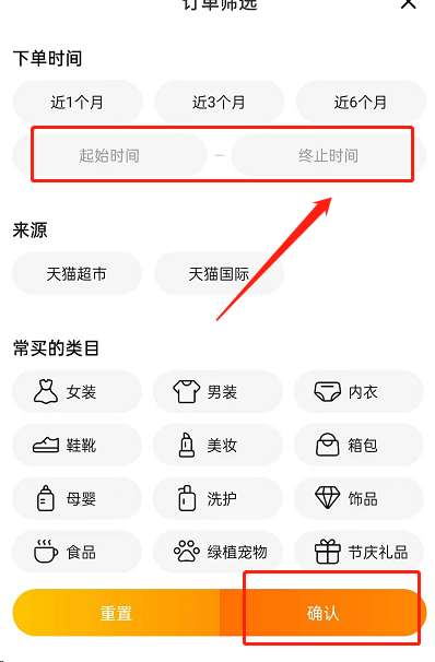3、接着,输入起始时间与终止时间,点击确认即可搜索。