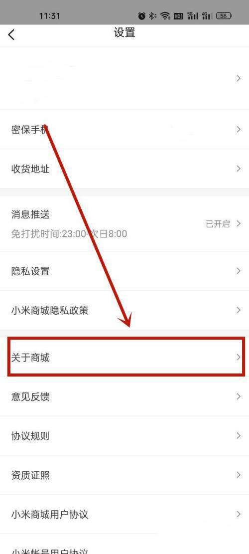 2、然后,点击关于商城。