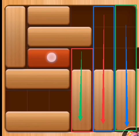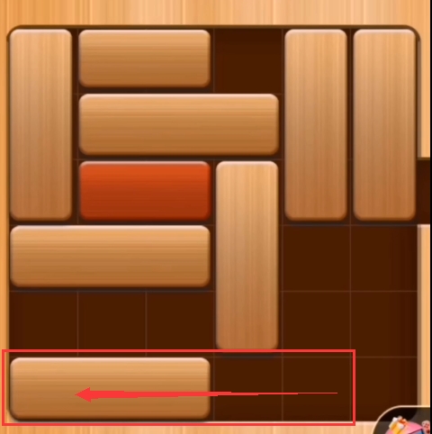 第一步:将最后一排的横向积木往下推(如图:)