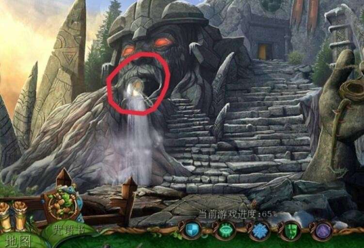 1、进入山中的大厅的山中场景中点击左边的雕像口。