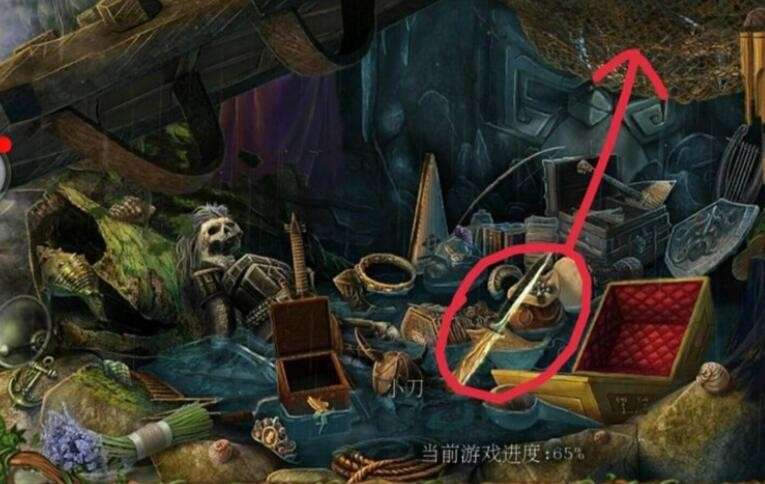 2、进入游戏:找到【12个鱼叉】;要先拉下右上方渔网里的【小刀】,再用【小刀】割断渔网,才会掉出【鱼叉】。