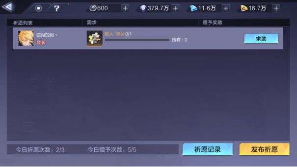 发布祈愿选择你所需要的猎人的碎片,如果公会里有人有,就会回应你的求助。但如果你要的是那种史诗级猎人的碎片,有的时候就要等大佬投喂或者是自己小号给了。