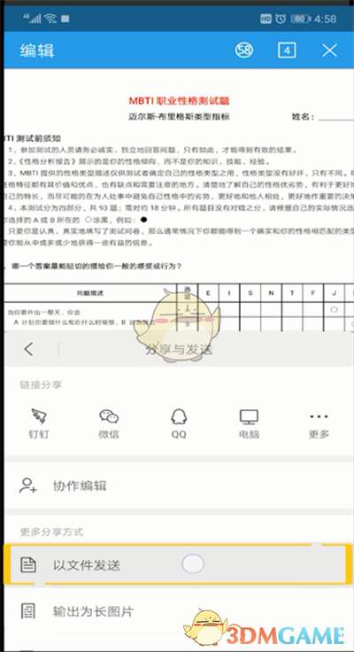 5、点击以文件发送即可。