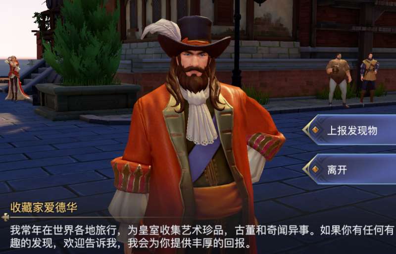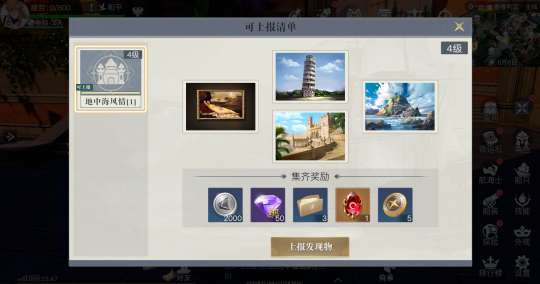 当找到所有发现物,我们点击“上报发现物”就会自行前往“塞维利亚”收藏家爱德华处,完成上报后即可获得研究资料、绑钻、银币、皇家招募券、探险币等奖励,奖励珍贵程度与上报清单星级成正比,上报清单星级越高奖励也越高,推荐大家将能收集上报的清单都集齐上报,奖励还是很香的。