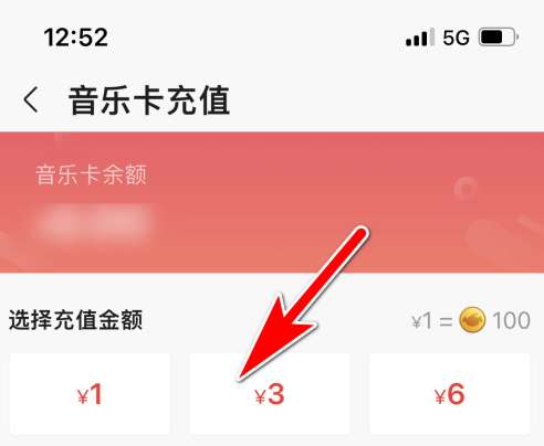 选择目标金额的选项完成充值,即可充值音乐卡。
