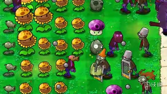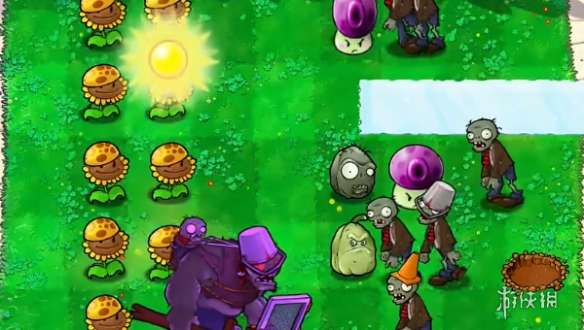 1、本关挑战使用的植物是固定的。 2、先在左侧第二列和第三列补充一列阳光向日葵,在右侧种植两个QQ弹弹大喷菇。