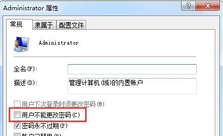 3、取消勾选图中“用户不能更改密码”确定即可。