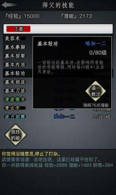 在放置江湖中,掌握和选择正确的技能是提升你武当弟子实力的关键。以下是部分技能的解析,帮助你进行选择: