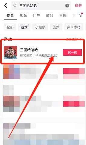 打开抖音app搜索【三国哈哈哈】,第一条出来的就是该游戏,点击【玩一玩】,等待片刻,进入游戏页面,点击【开始游戏】即可进入游戏体验了。