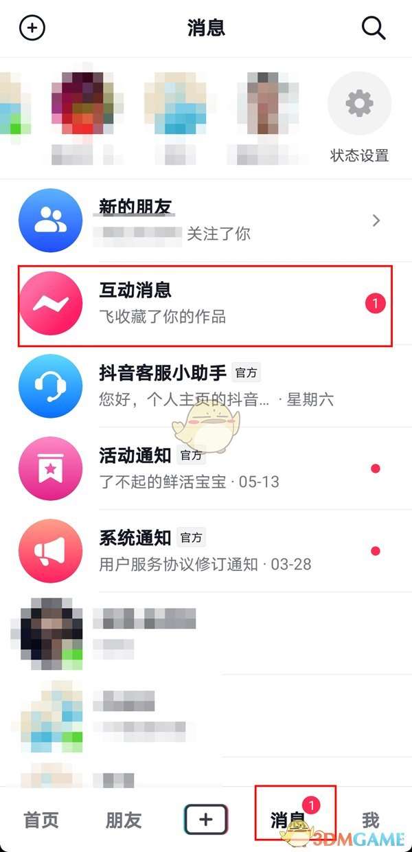 1、打开抖音,点击【消息】,点击【互动消息】。