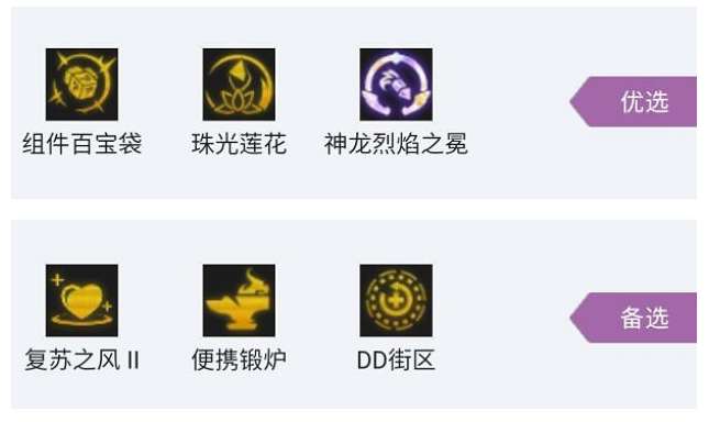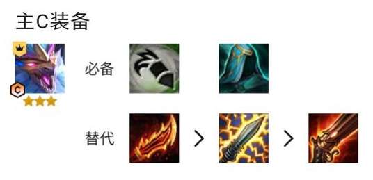 主C迭嘉装备优先给神龙烈焰纹章和水银,第三件给羊刀,也可以用电刀和火炮代替。