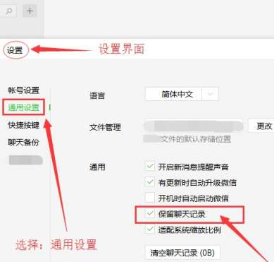 在设置界面中,选择“通用设置”,然后勾选“保留聊天记录”。