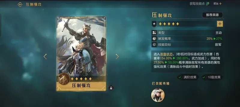 在重返帝国游戏中,压制强攻这个传说技能,最突出的点并不是伤害,而且强大的异常状态清除效果。技能的Buff效果大于伤害效果,因此非常适合野外作战时使用。今天小编给大家带来了《重返帝国》压制强攻使用攻略,感兴趣的小伙伴们一起来看看吧。