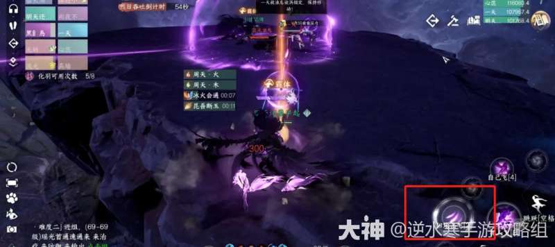 英雄老五的普通攻击方式变化不大,主要是BOSS上来就会喷火和分摊队友上天伤害等普通模式后续阶段才有的攻击方式,喷出的紫色火焰会在地上持续一段时间才消失,需要铁衣将BOSS拉到远离紫火的区域作战。