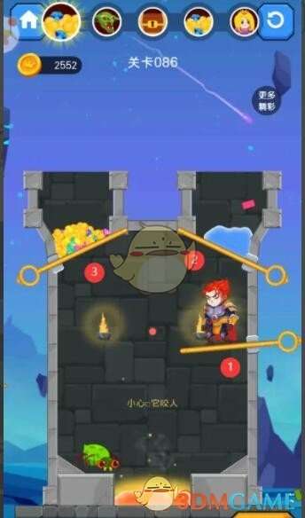 救救王子是一款很好玩的冒险闯关游戏,我们要帮助王子得到财富或美人哦。那么游戏第86关怎么过呢?下面是十大评测小编给大家带来的《救救王子》第86关通关攻略,感兴趣的小伙伴们一起来看看吧。