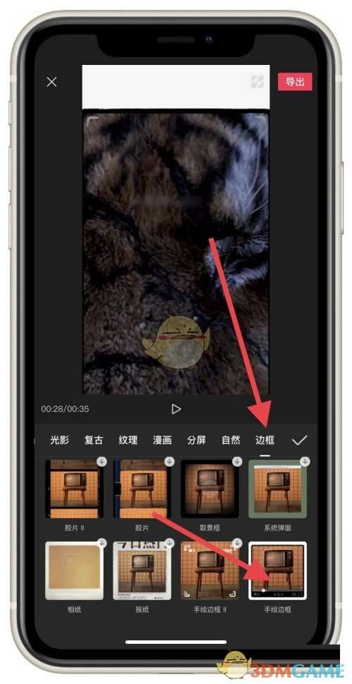 4、点击边框,再点击手绘边框特效;