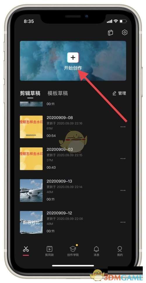 1、首先打开剪映App,点击下方开始创作;